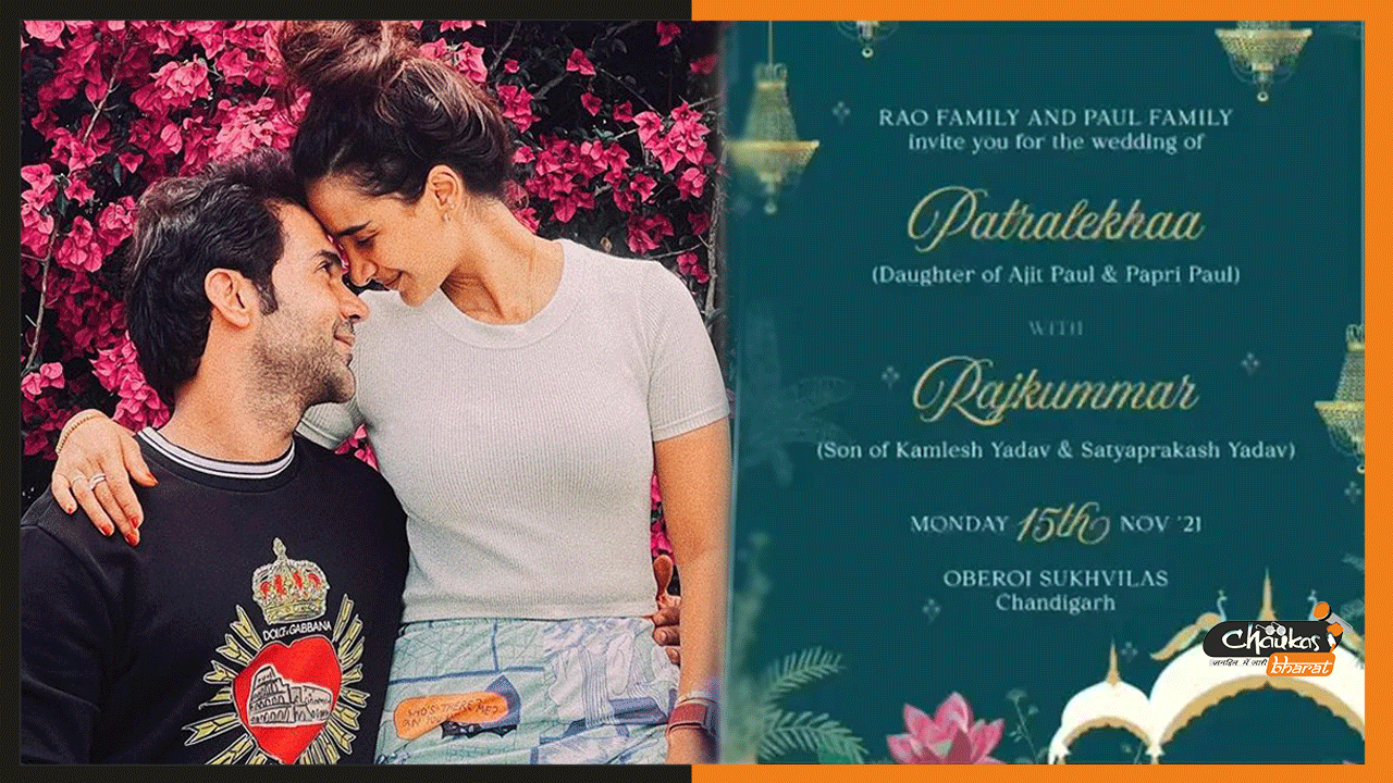 15 नवंबर यानी आज, राजकुमार राव (Rajkummar Rao) और पत्रलेखा (Patralekhaa) चंडीगढ़ में शादी के बंधन में बंधने वाले हैं। ये दोनों आज चंडीगढ़ के Oberoi Sukhvilas Hotel में सात फेरे लेंगे। पिछले दिनों इन दोनों के इंगेजमेंट का वीडियो सोशल मीडिया पर खूब वायरल हो रहा था। जिसमें ये दोनों खूबसूरत वाइट ड्रेस में नज़र आ रहे थे। दोनों ने एक दूसरे को घुटने पर बैठ कर इंगेजमेंट रिंग पहनाई थी। जिसके बाद अब इनदोनो के वेडिंग कार्ड का एक फोटो खूब वायरल हो रहा है।