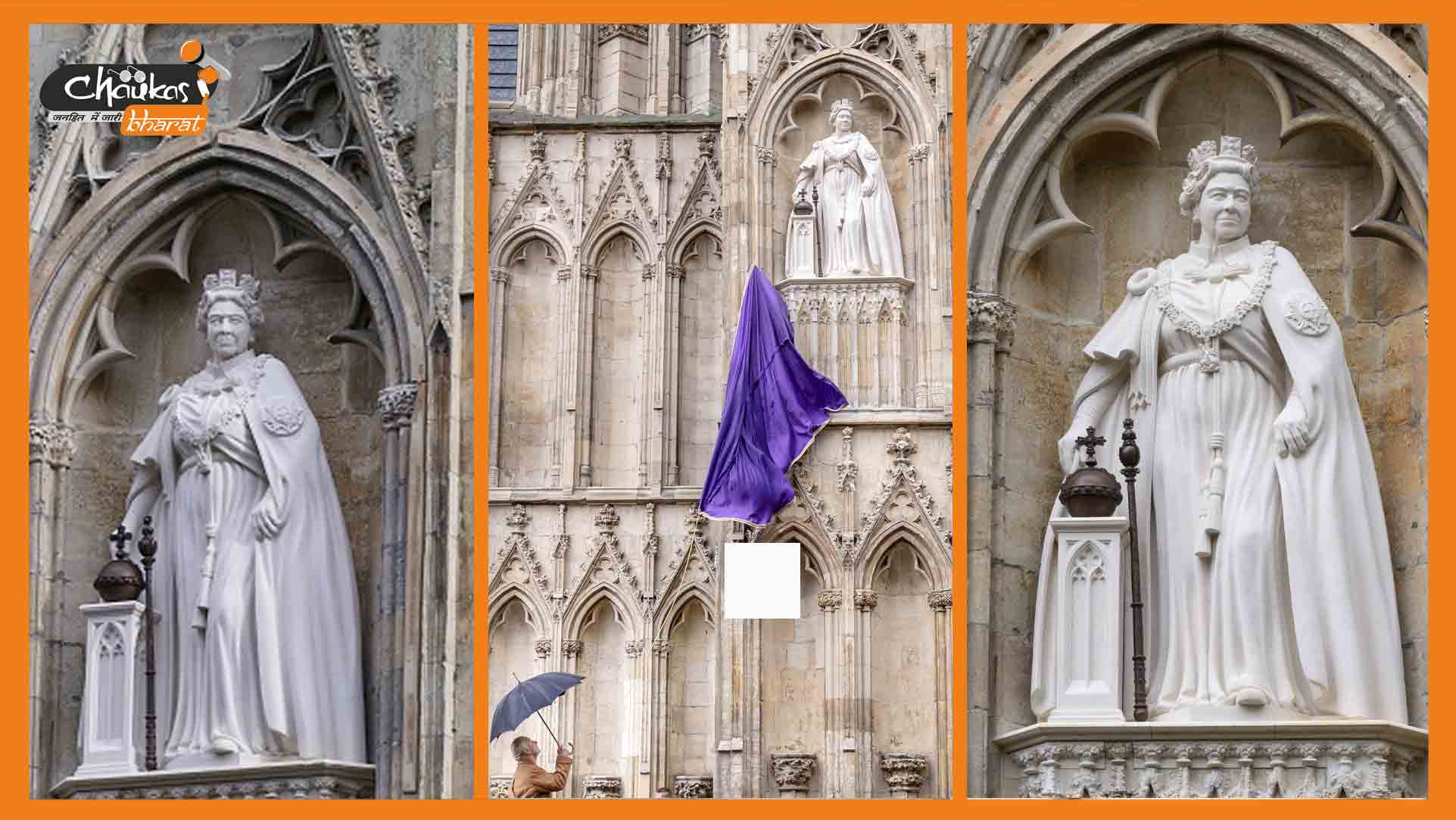 किंग चार्ल्स III (King Charles III) ने यॉर्क मिनस्टर (York Minster) के प्रवेश द्वार पर महारानी एलिजाबेथ द्वितीय (Queen Elizabeth II) की मृत्यु के बाद उनकी पहली प्रतिमा का अनावरण किया। 6 फीट और 7 इंच की मूर्ति स्वर्गीय रानी के अभूतपूर्व 70 साल के सिंहासन पर जश्न मनाने के लिए बनाई गई थी, जो इस साल अगस्त में पूरी हुई थी। इस साल 8 सितंबर को उनकी मृत्यु के बाद से रानी की यह पहली प्रतिमा है जिसका उद्घाटन किया गया है।